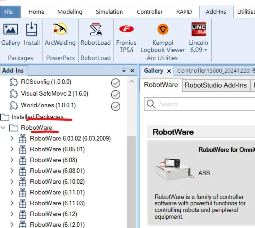 查找对应 RobotWare 版本: