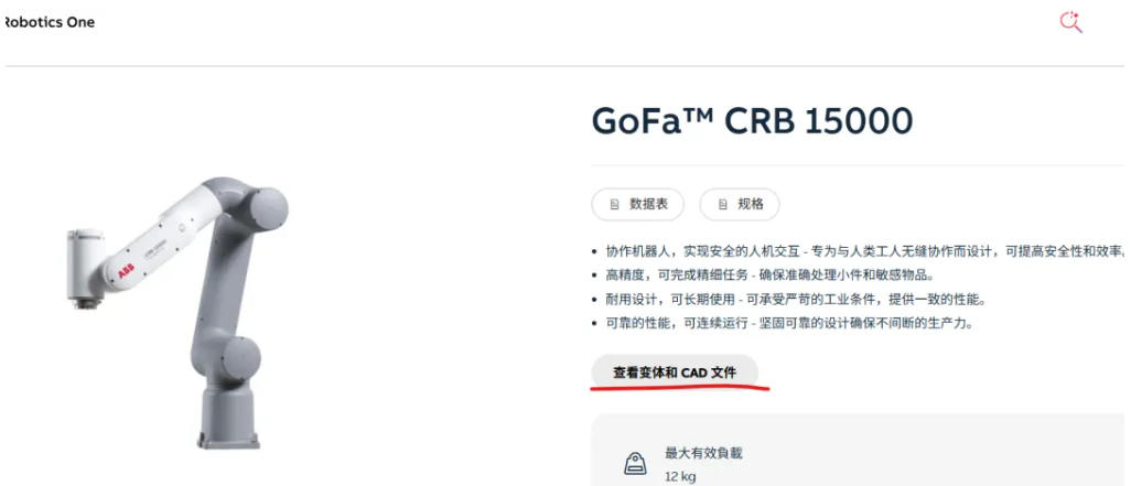 ABB 提供官方机器人数模(用于 RobotStudio 仿真、CAD 设计等),格式包括.sat、.step、.igs 等,支持主流 CAD 软件(如 SolidWorks、AutoCAD)和 RobotStudio 导入。下载步骤: