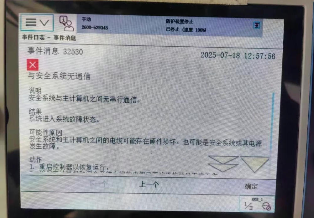 故障:机器人开机后,出现32530 与安全系统无通讯